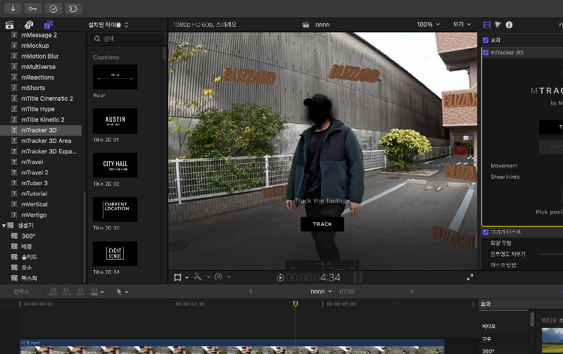 언제부터인가 우리는 3D라는 단어가 친숙하게 다가온듯 싶다. 그리고 이제는 특별한 느낌도 없이 일상속에 당연한 듯한 단어라 생각하는 것 같다. 하지만 예전에는 게임을 3D로 제작했다거나 영화까지 나왔다 하면 엄청나다는 그런말을 뉴스에서도 많이 들어본듯하다. 이제는 뉴스나 매체에서 그런 말을 하기도 부끄러운 시대가 된듯 싶다. 왜냐하면 우리 생활속에 이미 많이 침투해 있고 당장 지금 필자 마저도 글을 쓰는 주제도 이 3D에 대해서 이야기를 하려 하기 때문이다. 3D라 함은 일반적으로 입체감이 있는 그런 연상을 가르키는 단어라 생각된다. 당연하다. 우리가 보는 대부분의 영상은 아무리 3D로 제작되었다 한들 어디까지나 액정 디스플레이 같은 평면 장치로만 보기 때문이다. 흔히 텔레비전이나 핸드폰 액정이 이에 해당한다. 이런 디스플레이 장치들은 2D라 말한다. 다들 알겠지만 X축과 Y축만 존재한다. 한마디로 점에서 한단계 진화된 평면이다. 여기서 Z축이라는 새로운 축을 추가하면 평면이 입체가 된다. 이게 3D인 것이다. 흔히들 3차원이라 말한다. 우리가 눈으로 직접적으로 느낄수 있는 그런 입체의 느낌이 바로 이런 것이다. 우리는 3차원의 세계에 살고있고 3차원의 물건을 보고 느끼며 산다. 그렇기에 우리는 3차원의 모든 세상에 맞춰져 있고 친숙하다. 하지만 21세기를 살아가고 있는 현재 우리 인류는 아직까지 3차원의 영상을 제대로 만들어 내지 못한다. 2022년 현재도 항상 3차원을 향한 갈망과 노력을 하고 있는 단계이다. 그래도 어느 정도의 인류의 노력이 있었는지 2D 영상에 3D를 자연스럽게 입히는 단계는 와 있는 것 같다. 현재까지 수많은 게임과 영화가 3차원으로 제작되고 현재 시중에 나와있는 이런 컨텐츠들은 상당히 퀄리티가 높다. 최근 언리얼5라는 게임 엔진을 보니 사실상 3차원의 영역을 2차원에 표현하는 시기의 막바지 단계에 와 있는듯 싶다. 아무튼 현재 이런 시기에 우리가 살고있다. 이에 우리도 영상편집을 통해 3차원의 영역을 창작해서 표현 할수 있다. 그중 하나가 바로 3D 자막이다. 파이널컷 프로의 기본에도 있지만 이번에는 더 멋지고 영상속에 입체감을 더 쉽게 표현 해 줄수 있는 MotionVFX사(이하 모션사)의 mTracker3D를 알아보겠다.
